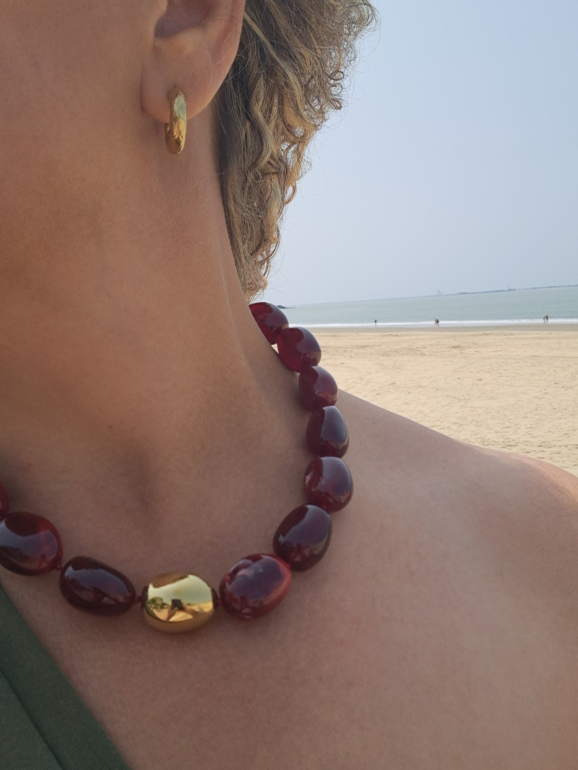 Le collier Virginia sur chaine avec perles en résine colorée en acier inoxydable sans nickel, sans cadmium, sans sel de plomb, il résiste à l'eau et ne noircit pas .